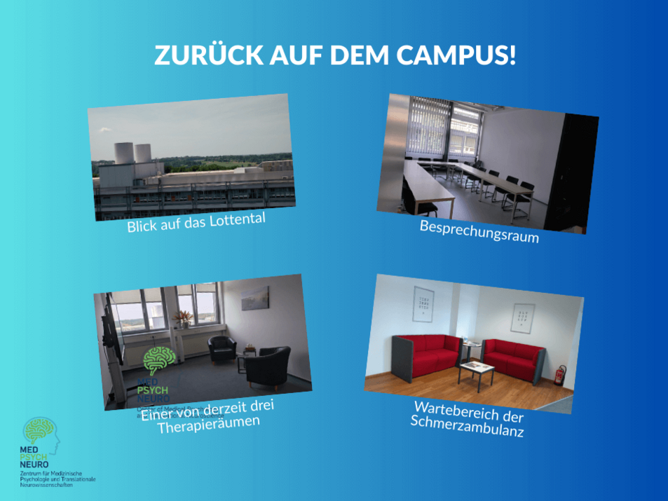 Die Abteilungen für Medizinische Psychologie und Medizinische Soziologie sowie Affektive Neurowissenschaften haben ihre Räumlichkeiten im Gebäude MA bezogen. Die Psychotherapeutische Hochschulambulanz befindet sich im Gebäude MB in der 7. Etage.